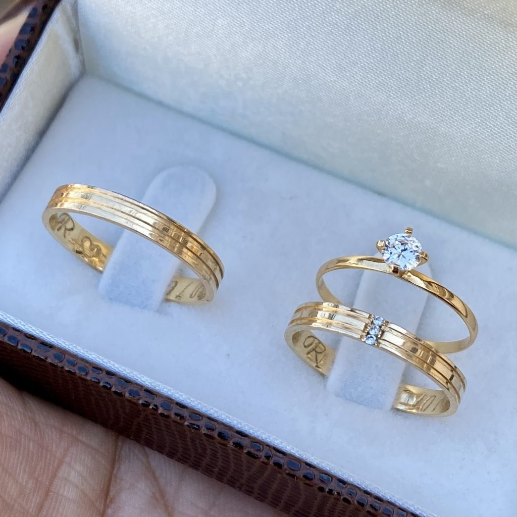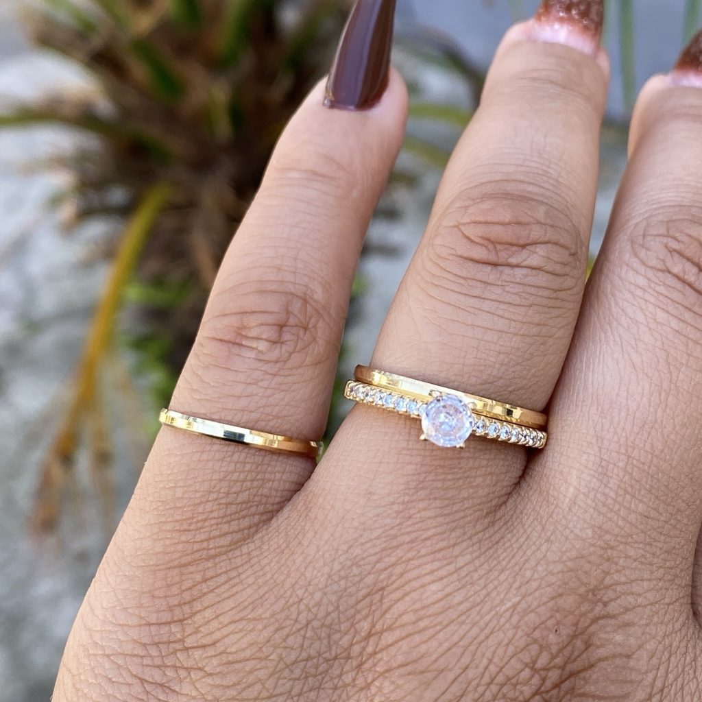 Alianças Alana 4 mm Diamantado Com Anel Solitário Unique