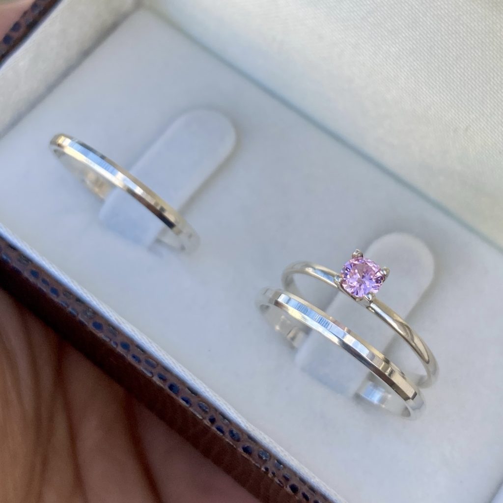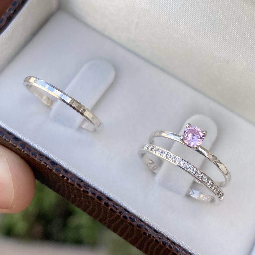 Alianças Amabel 1,5 mm Cravejada Com Anel Solitário Málaga Pedrinha Rosa