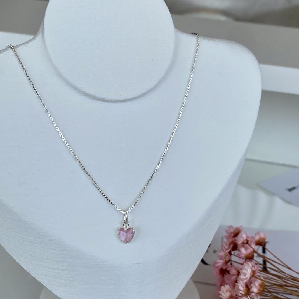 Corrente Feminina Veneziana Com Ponto De Luz Coração Azul Rosa
