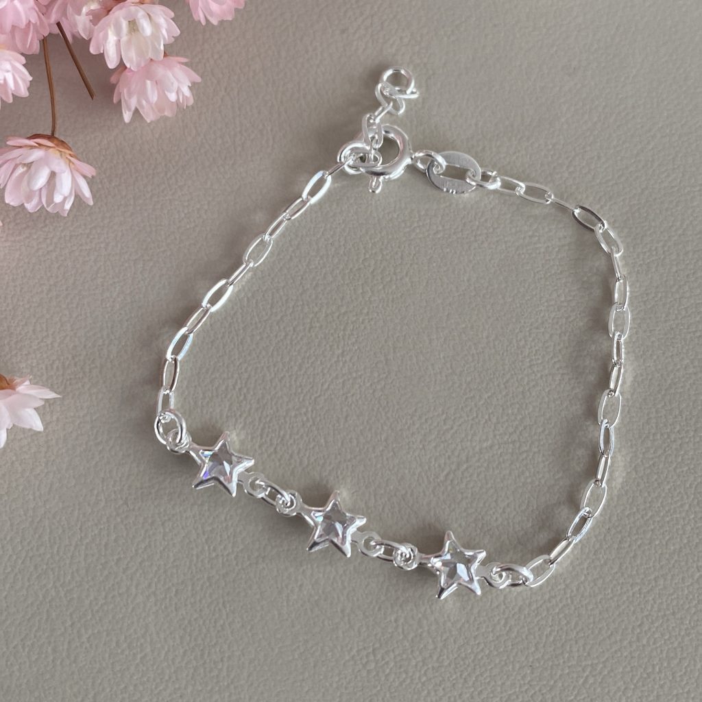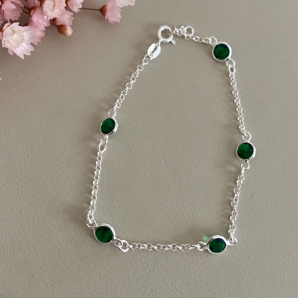 Pulseira De Prata Feminina Ponto de Luz Verde Prata 925