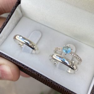 Alianças Arabela 4 mm Com Anel Solitário Belly Pedrinha Azul Claro