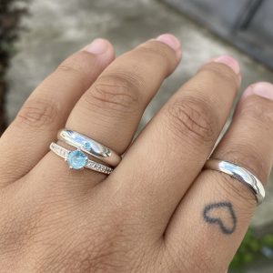Alianças Antônia 2 mm Com Anel Solitário Belly Pedrinha Azul Escuro