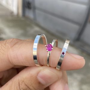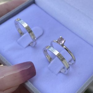 Alianças Antônia 2 mm Com Anel Solitário Málaga Pedrinha Pink