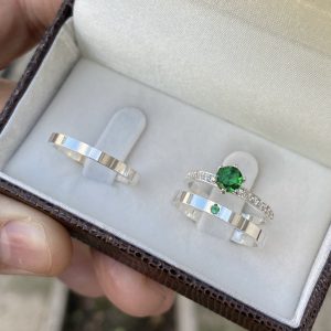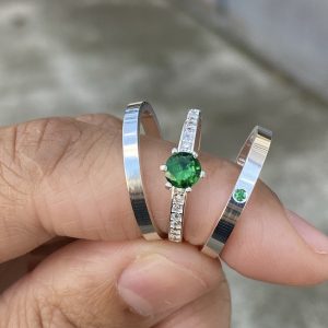 Alianças Antônia 2 mm Com Anel Solitário Belly Pedrinha Verde