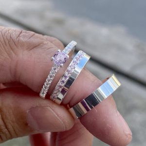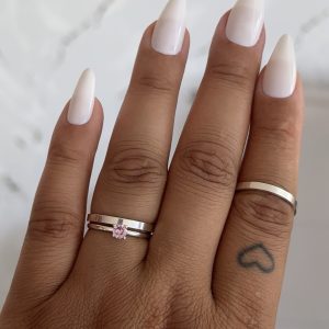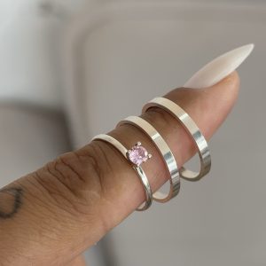 Alianças Mongólia 3,5 mm Pedrinha Rosa Com Anel Solitário Cinderela