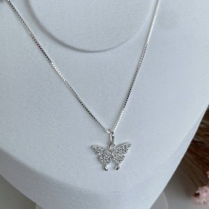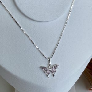 Corrente Feminina Com Pingente Borboleta Cravejada