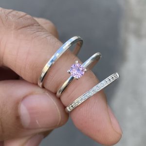 Alianças Amabel 1,5 mm Cravejada Com Anel Solitário Málaga Pedrinha Rosa
