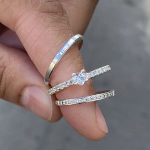 Alianças Amabel 1,5 mm Cravejada Com Anel Solitário Cinderela Coração