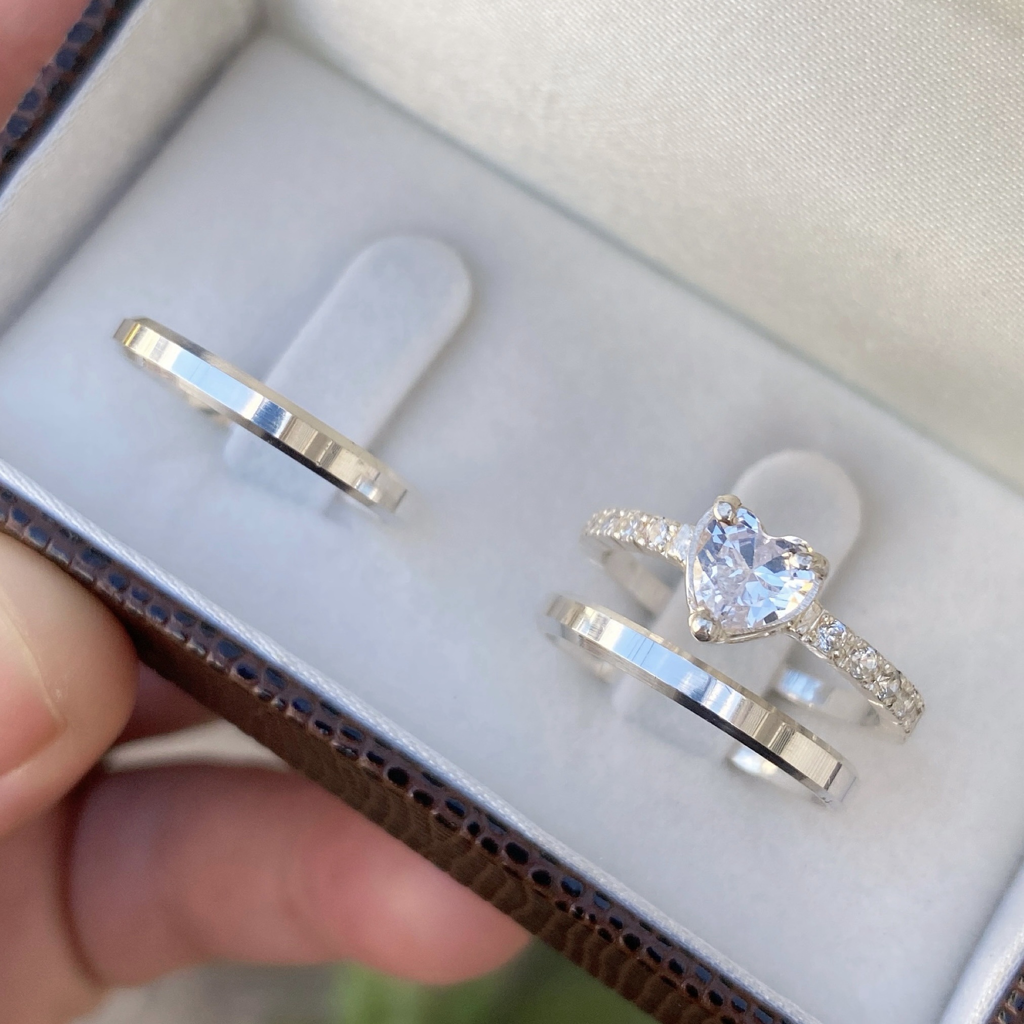 Alianças Amabel 2 mm Com Anel solitário Love Coração