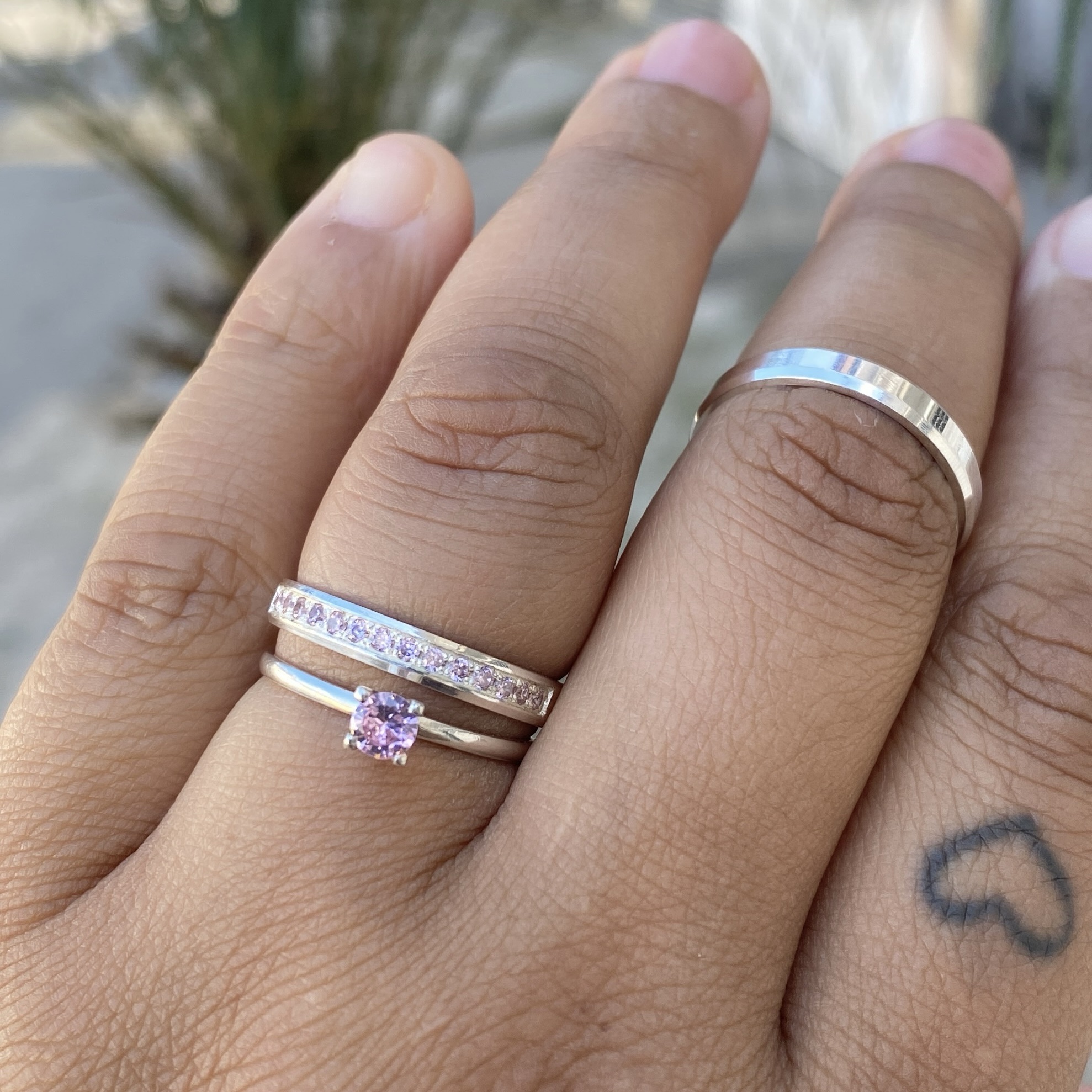 Alianças Jade 2 mm Pedra Rosa Com Anel Solitário Akyra Pedra Rosa