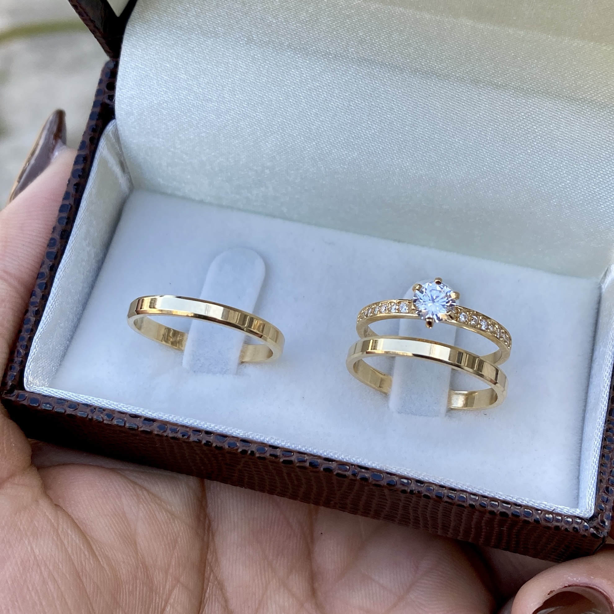 Alianças Belly 4 mm Com Anel Solitário Cinderela