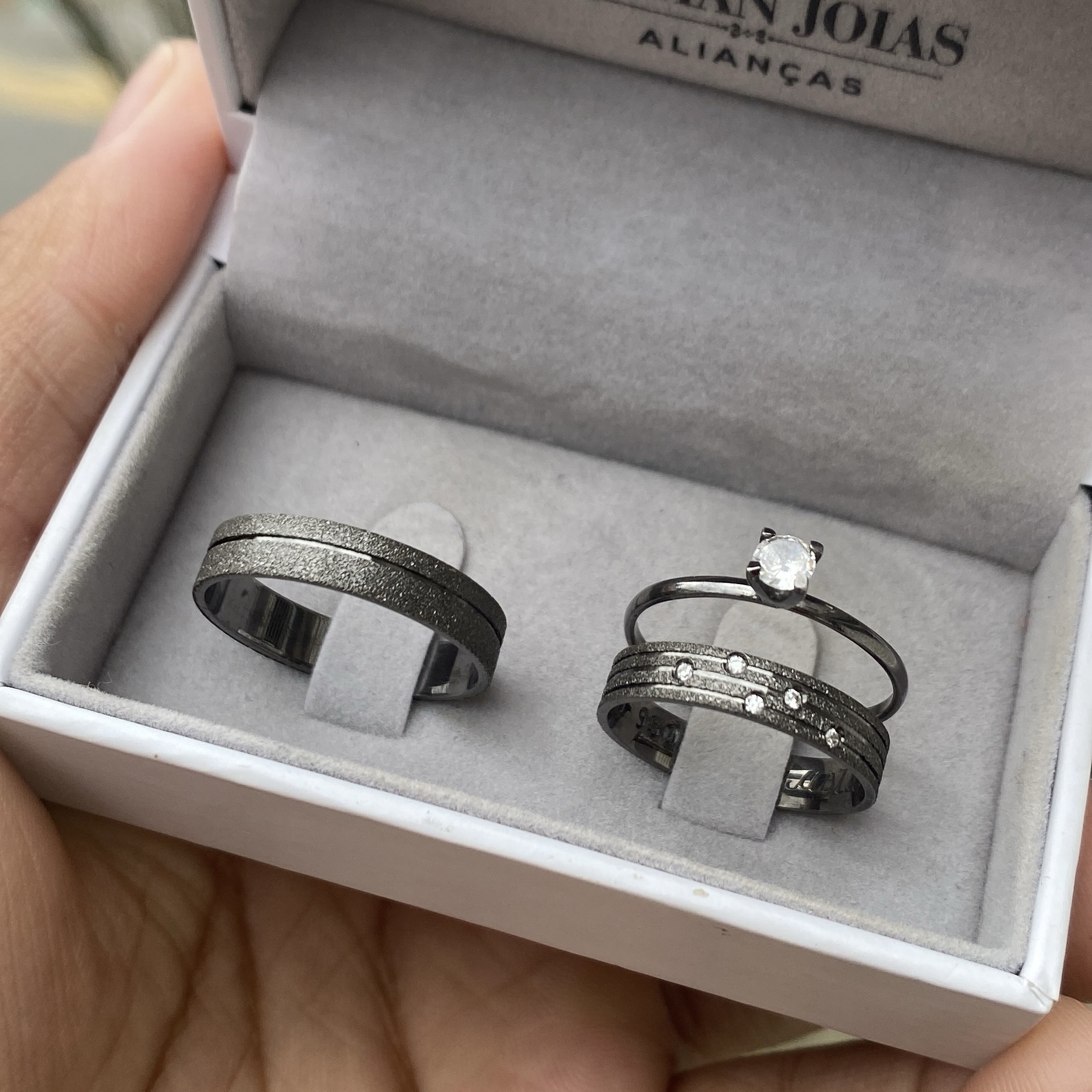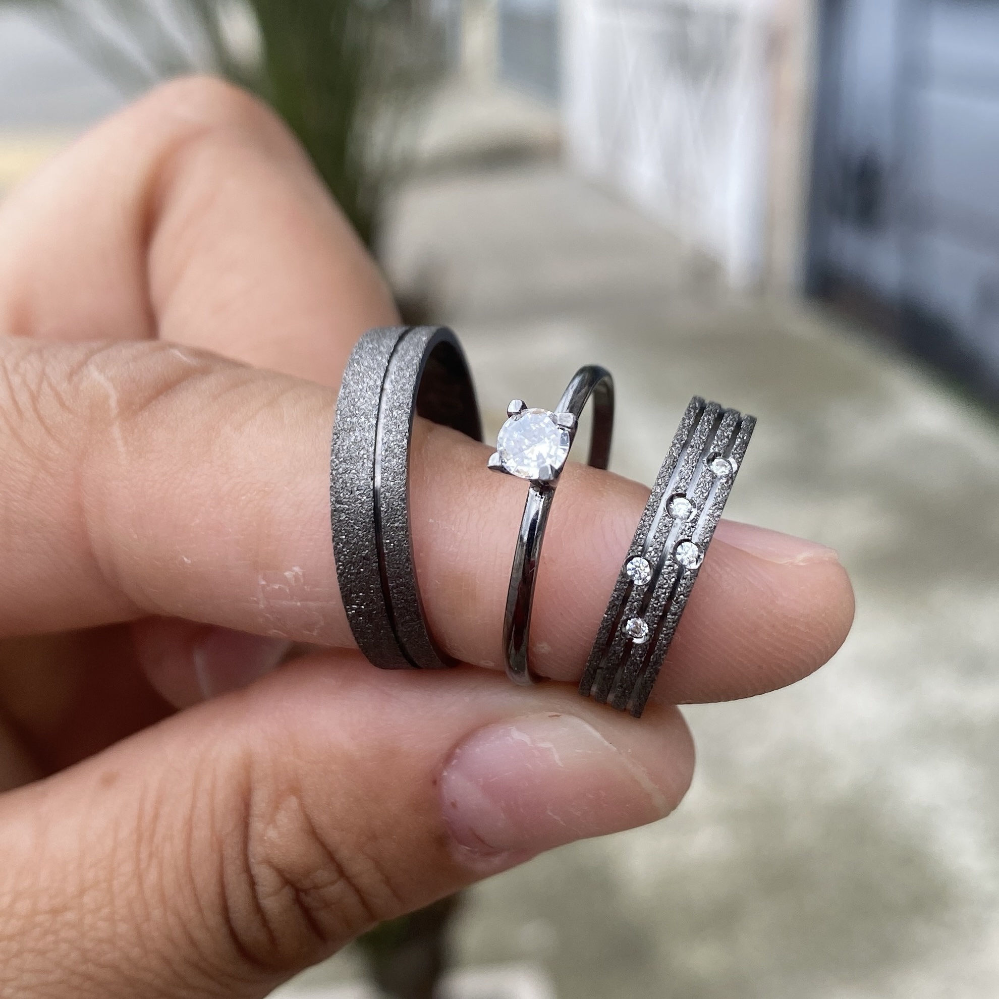 Alianças De Namoro Em Prata 950 Com Ródio Negro , Para Aqueles Casais Moderno.