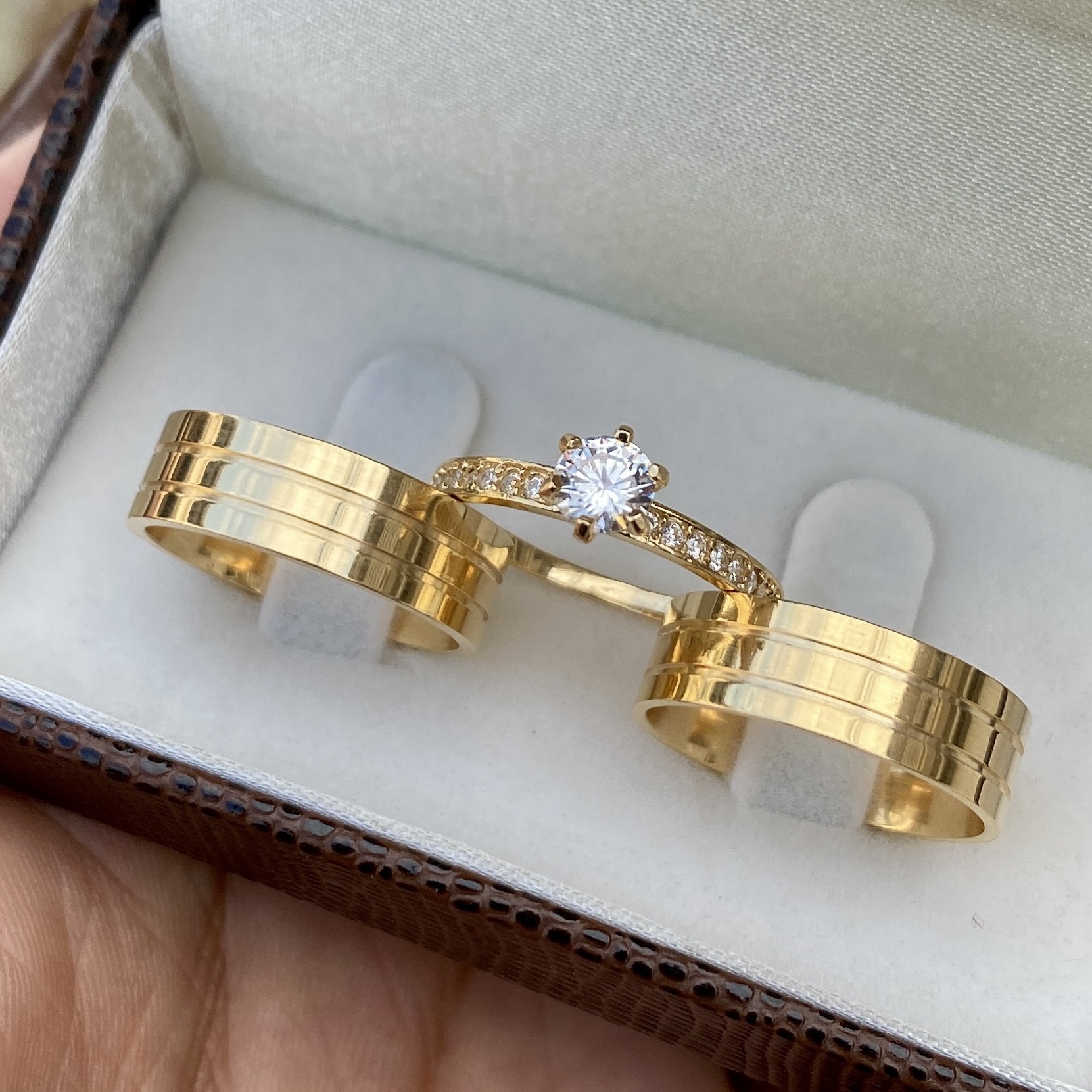 Alianças Chennai 3 mm Com Anel Solitário Belly