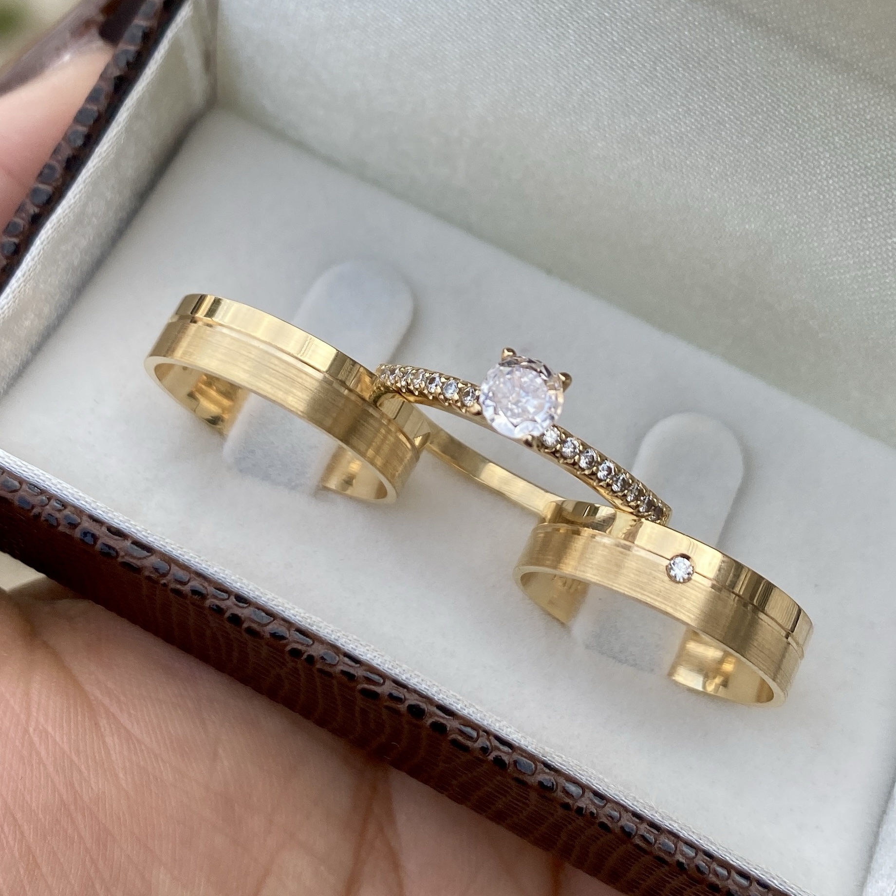 Alianças Dominique 3 mm Com Anel Solitário Belly