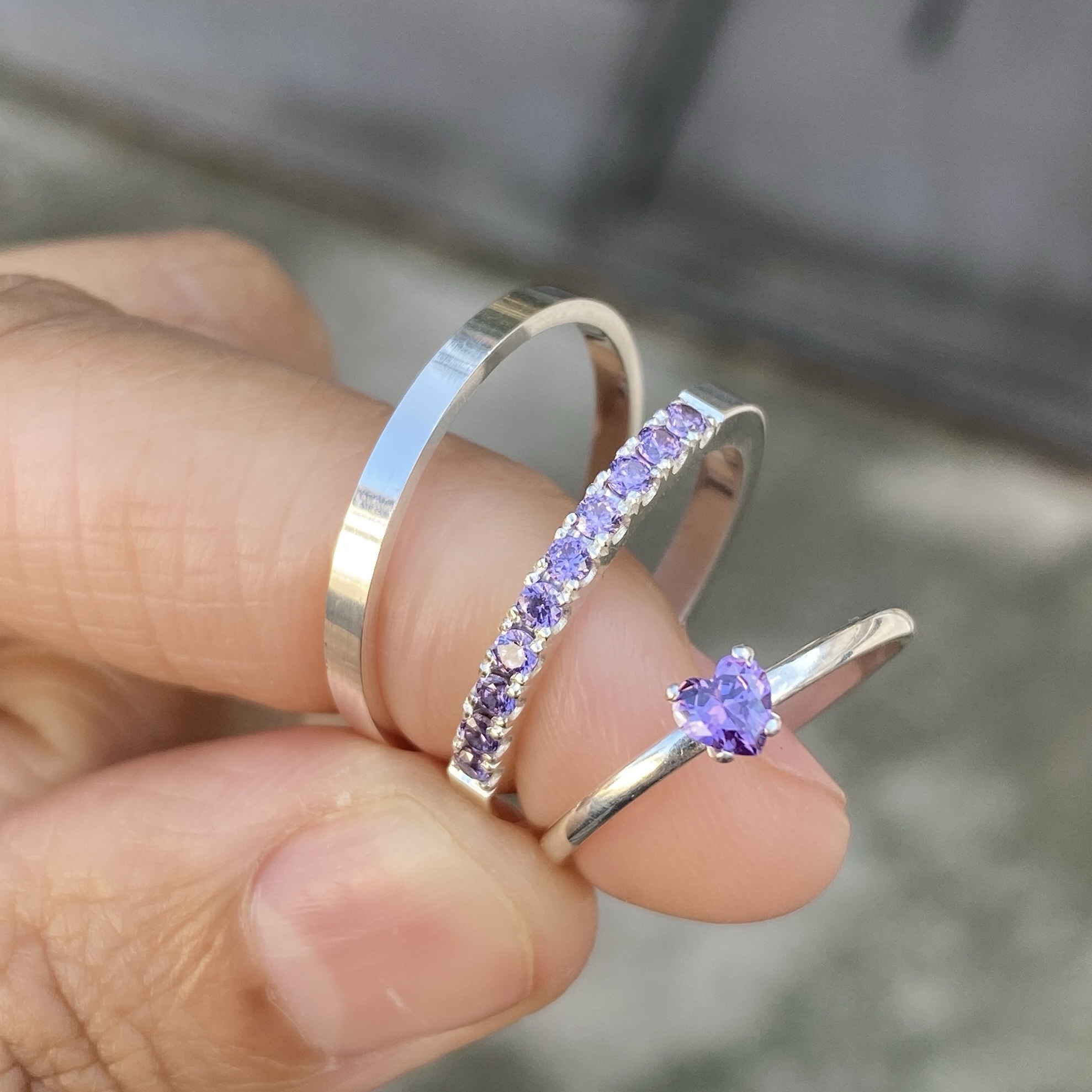Alianças Jade 2 mm Pedra Roxo Com Anel Solitário Málaga Pedrinha Coração Roxo