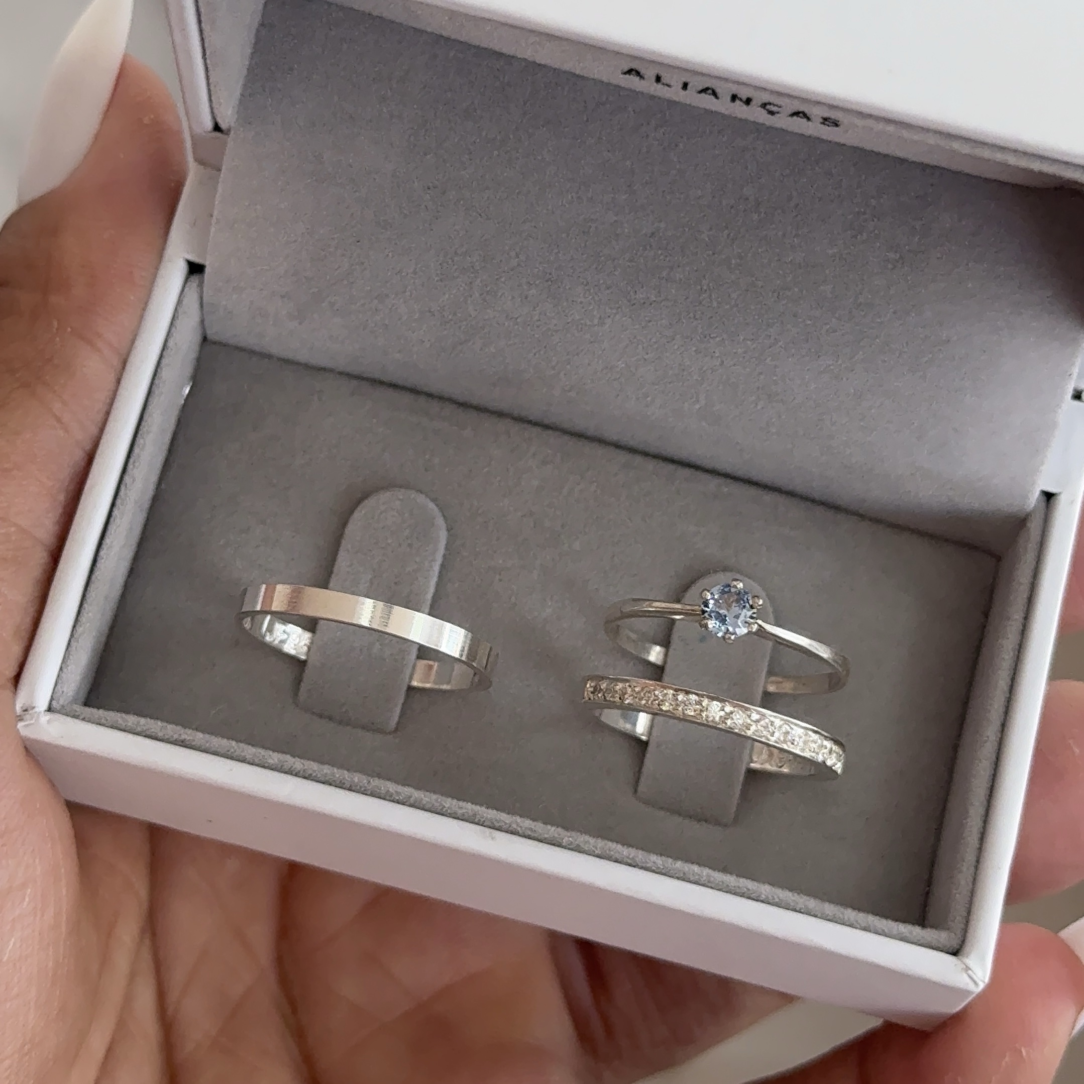 Seja o primeiro a avaliar “Alianças Londres 2 mm Com Anel Solitário Pedrinha Azul Claro” Cancelar resposta
