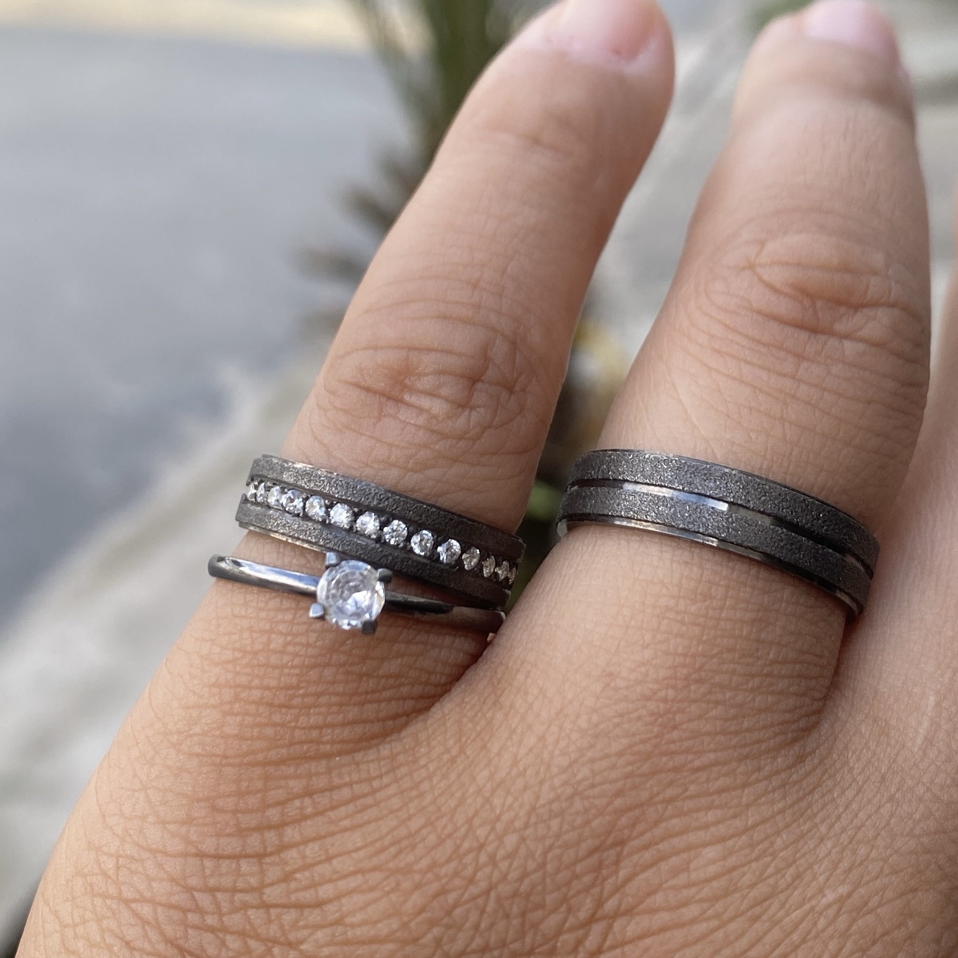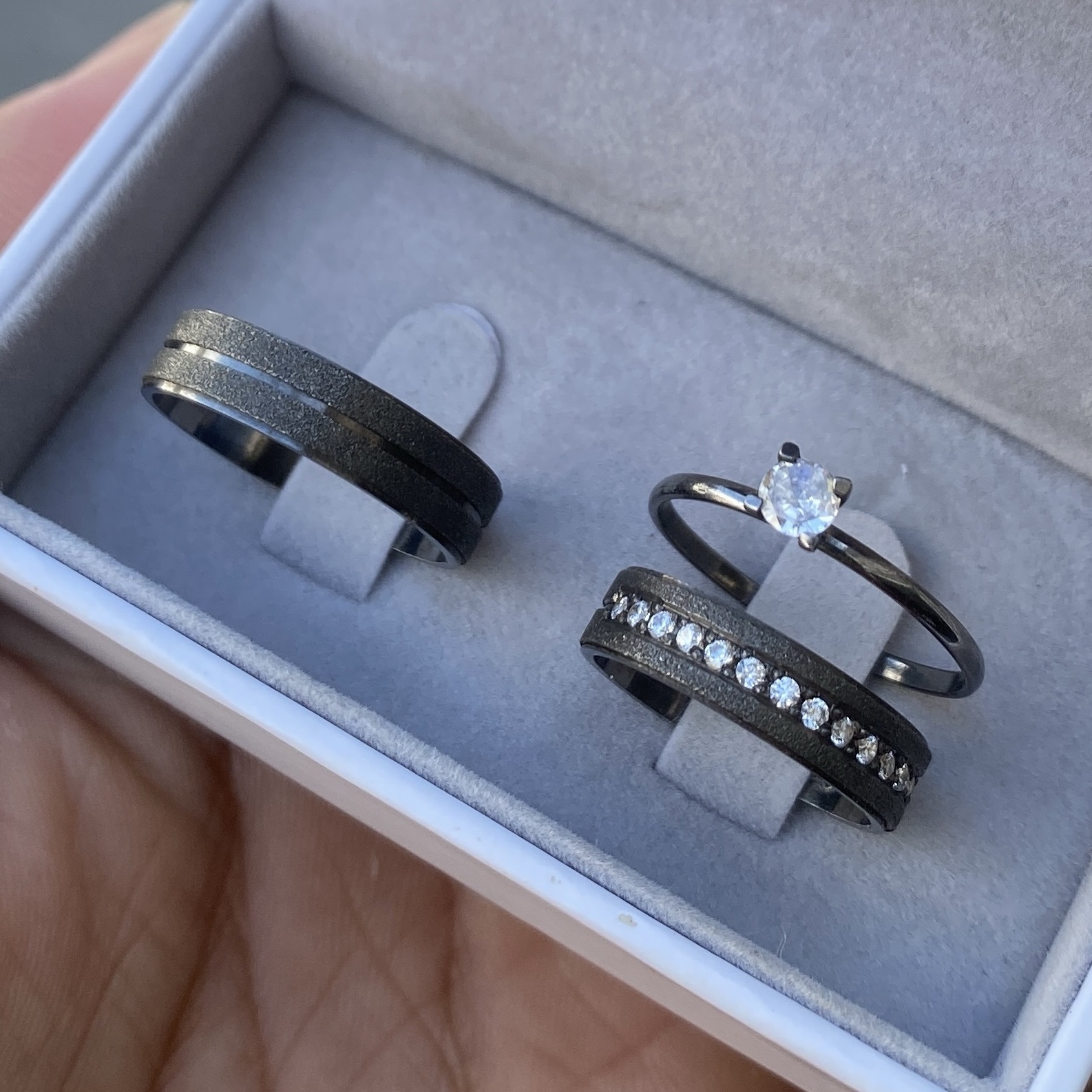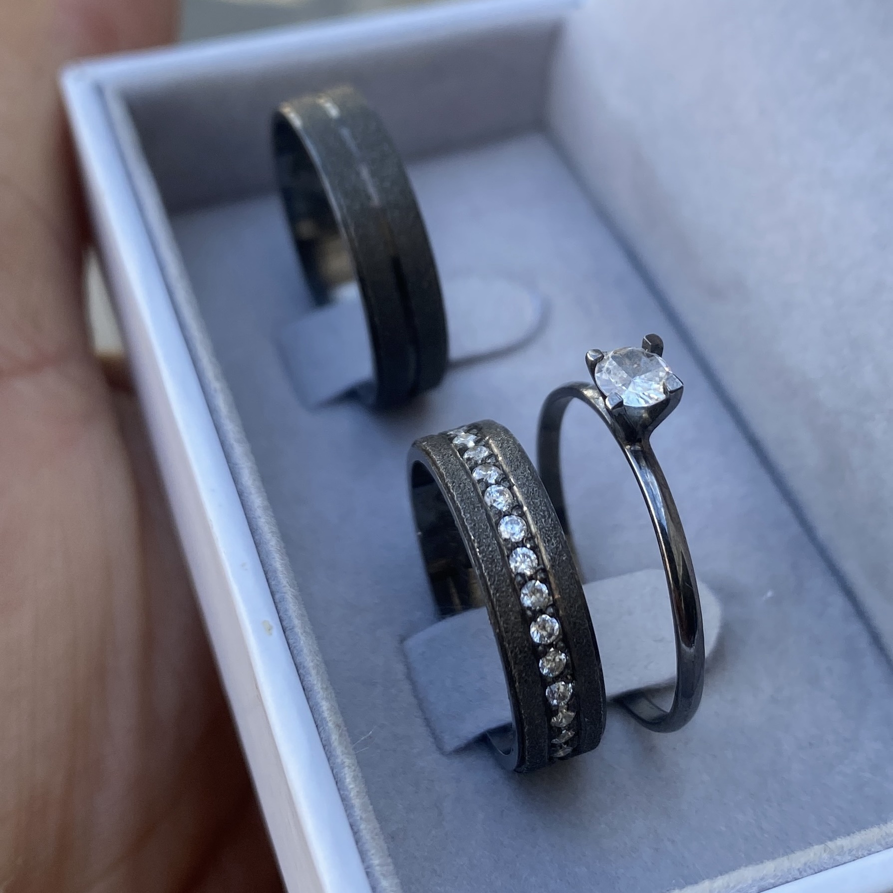 Alianças De Namoro Em Prata 950 Com Ródio Negro , Para Aqueles Casais Moderno.