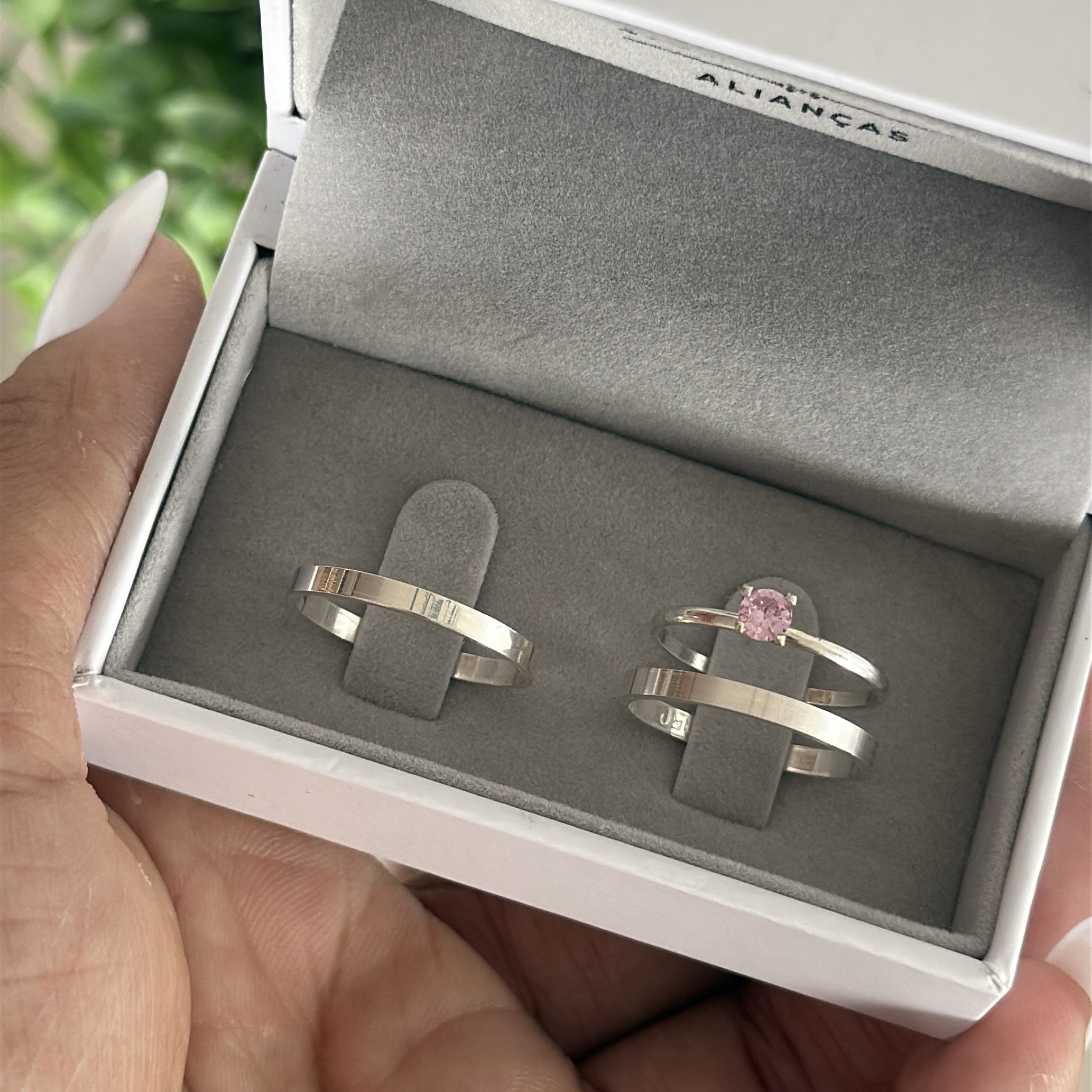 Alianças Munique Fio Cilíndrico 2 mm Com Anel Solitário Cinderela