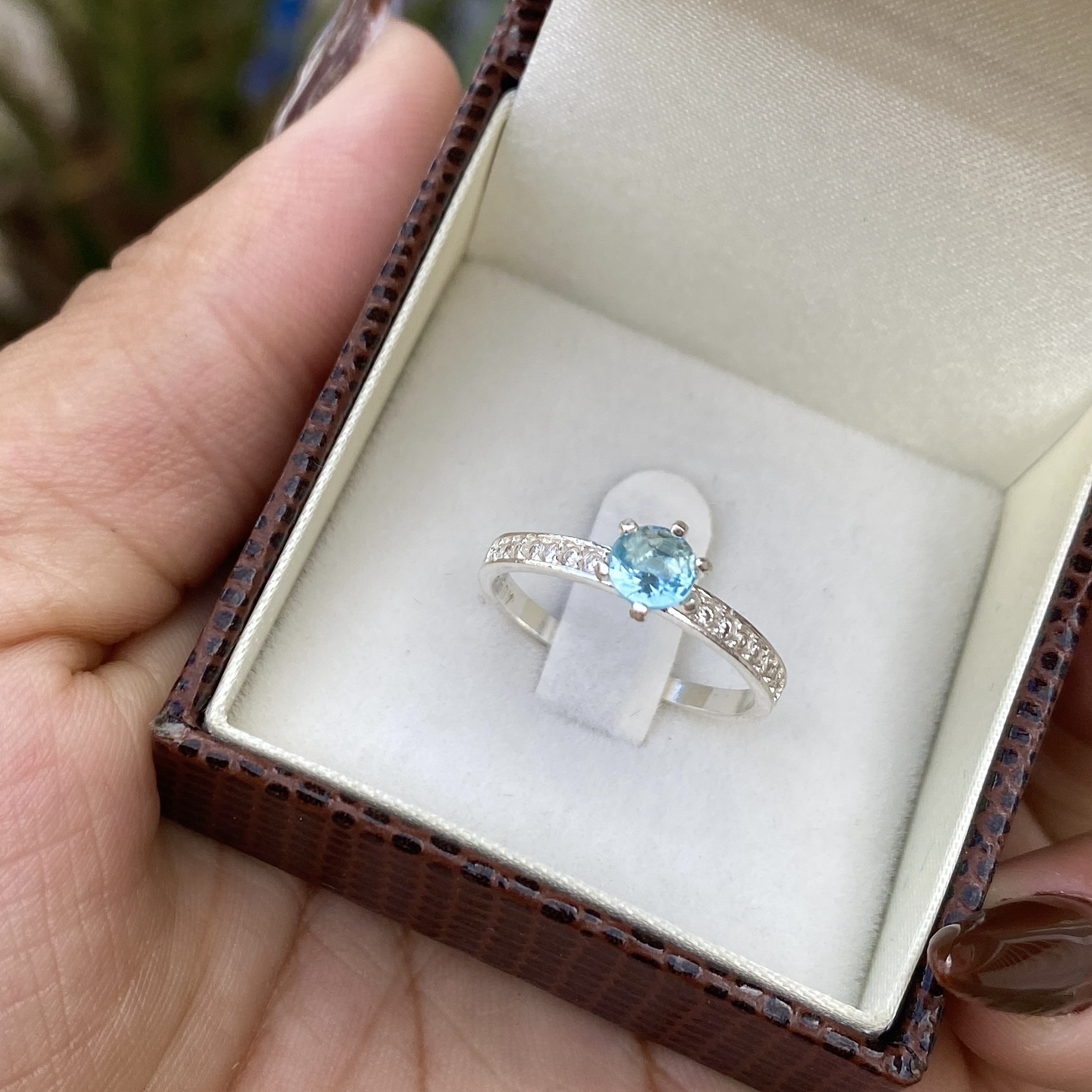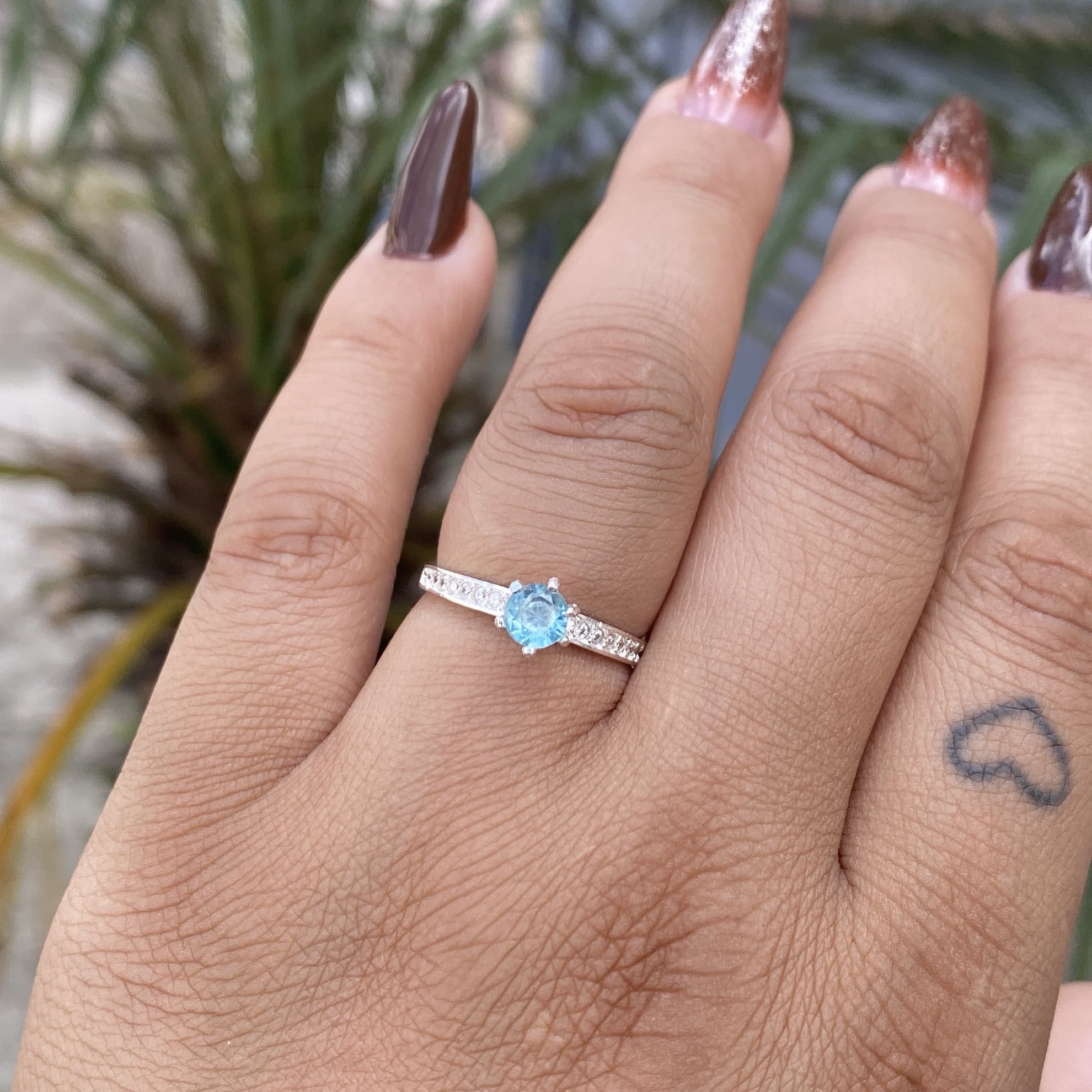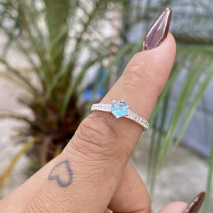 Anel Solitário Belly Pedra Azul Claro