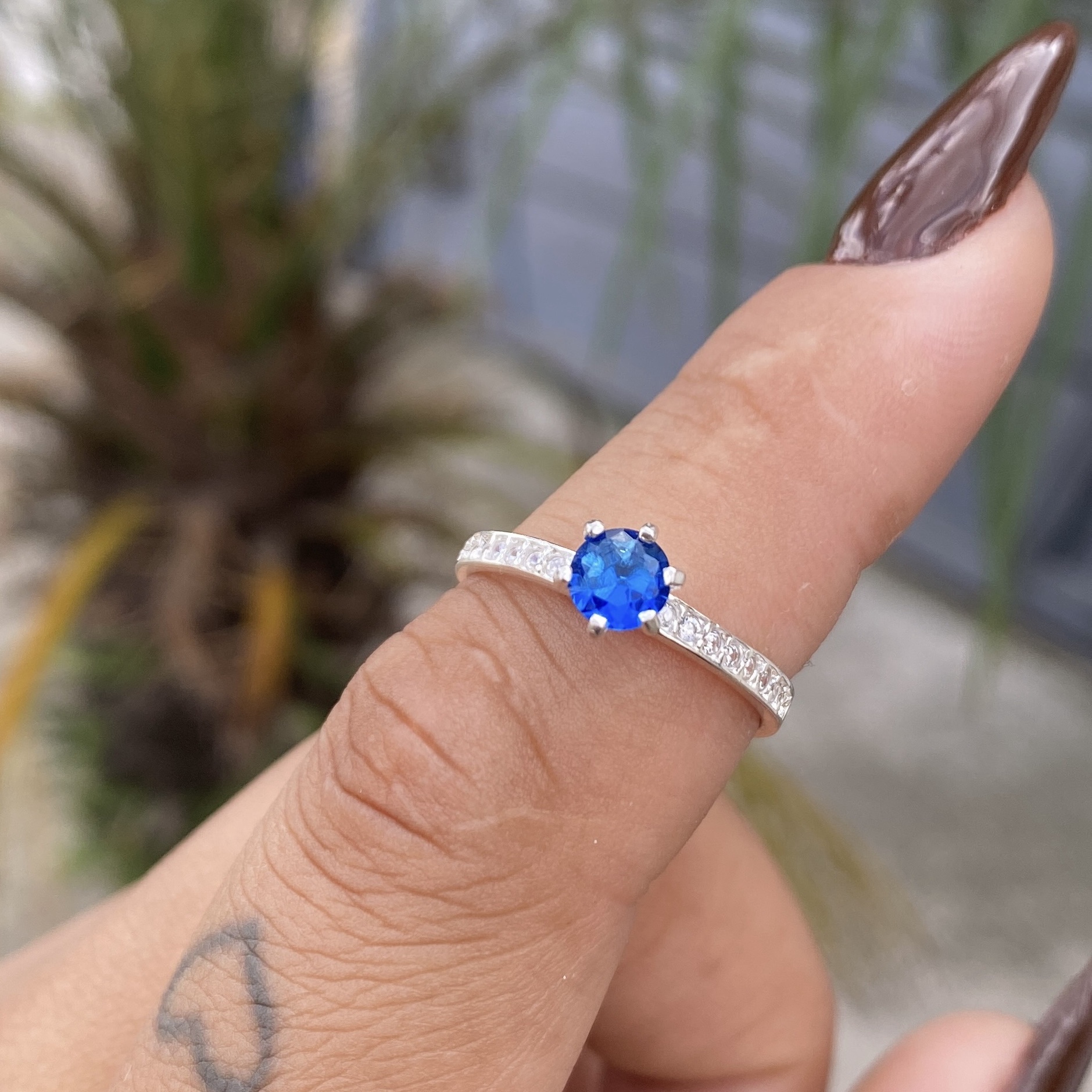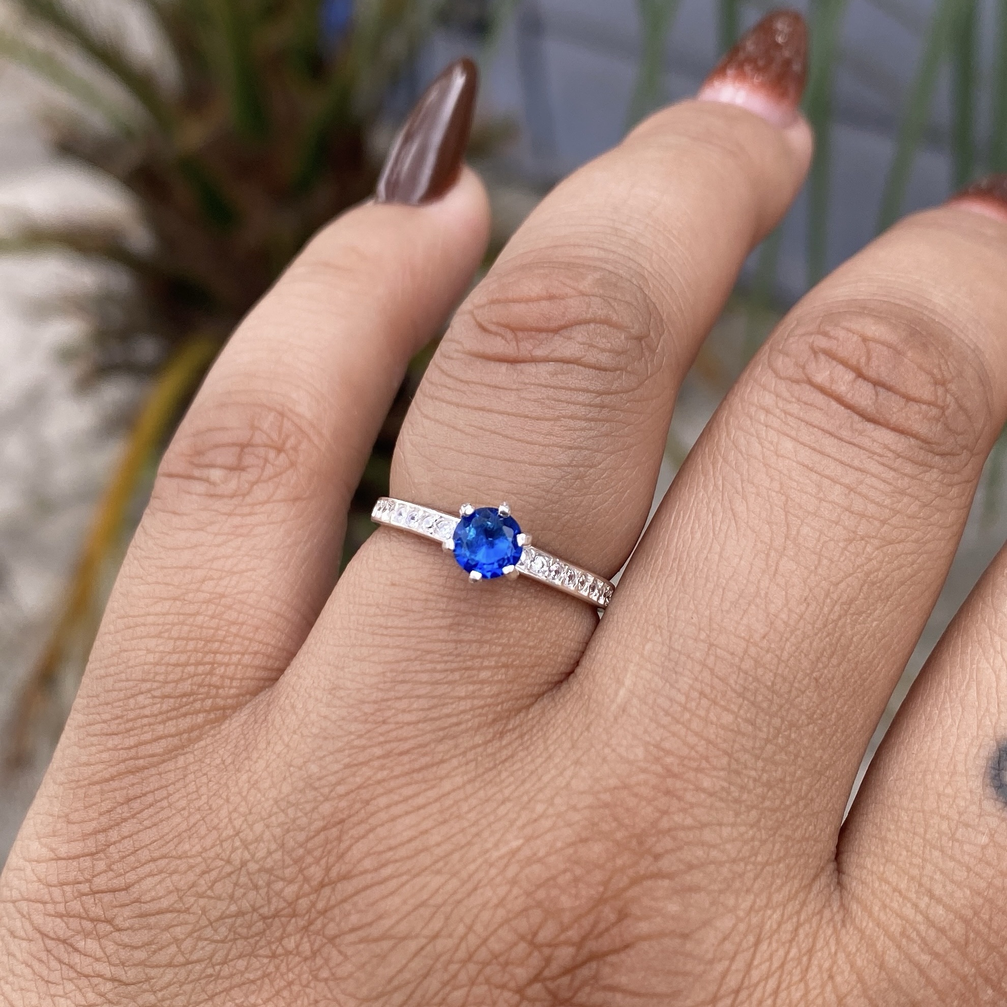 Anel Solitário Belly Pedra Azul Escuro