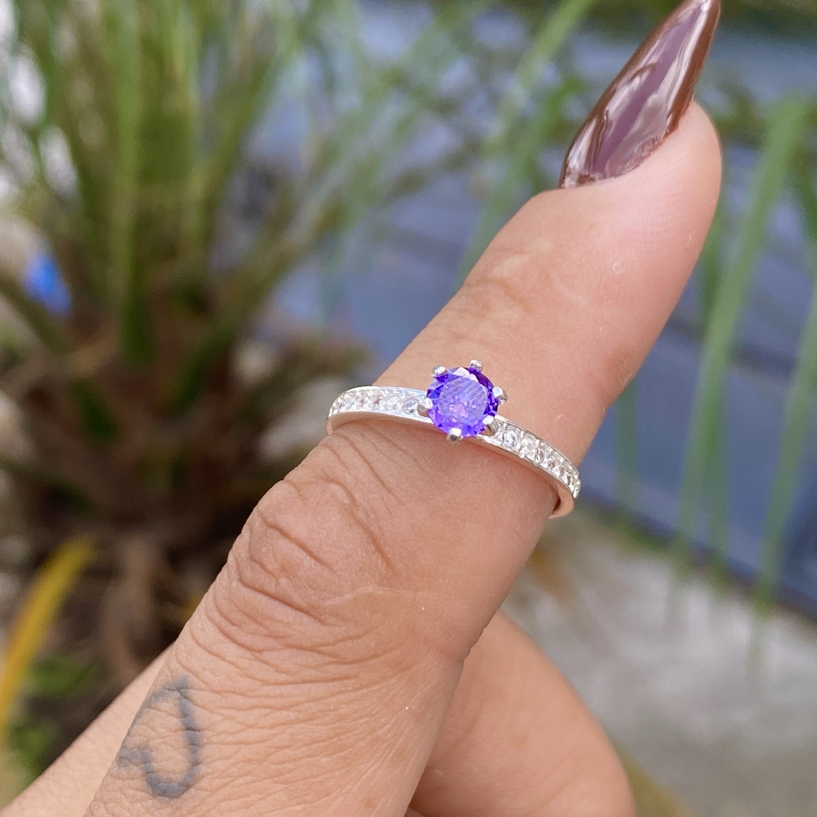 Anel Solitário Belly Pedra Roxa