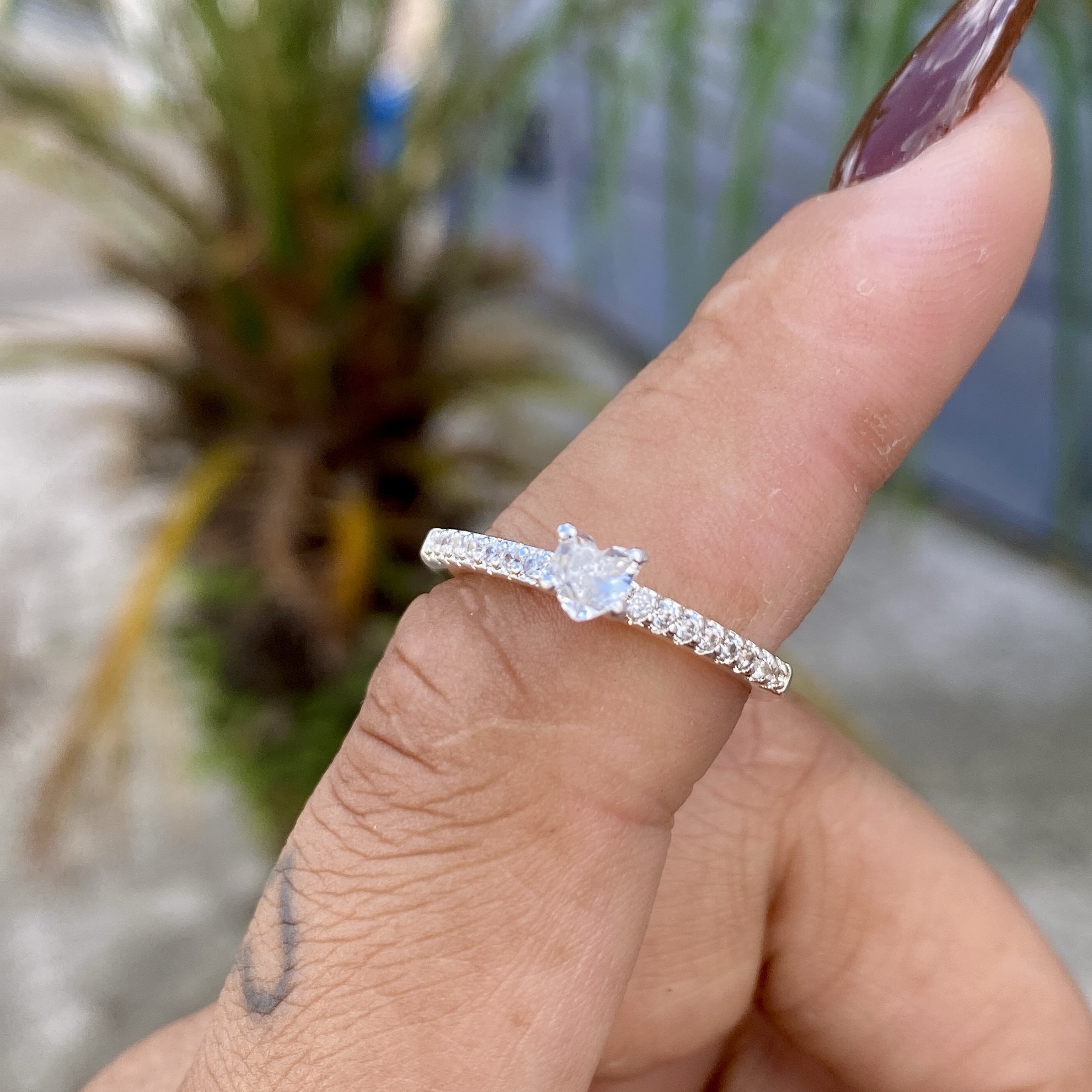 Anel Solitário Coração Cravejado e Chapeado
