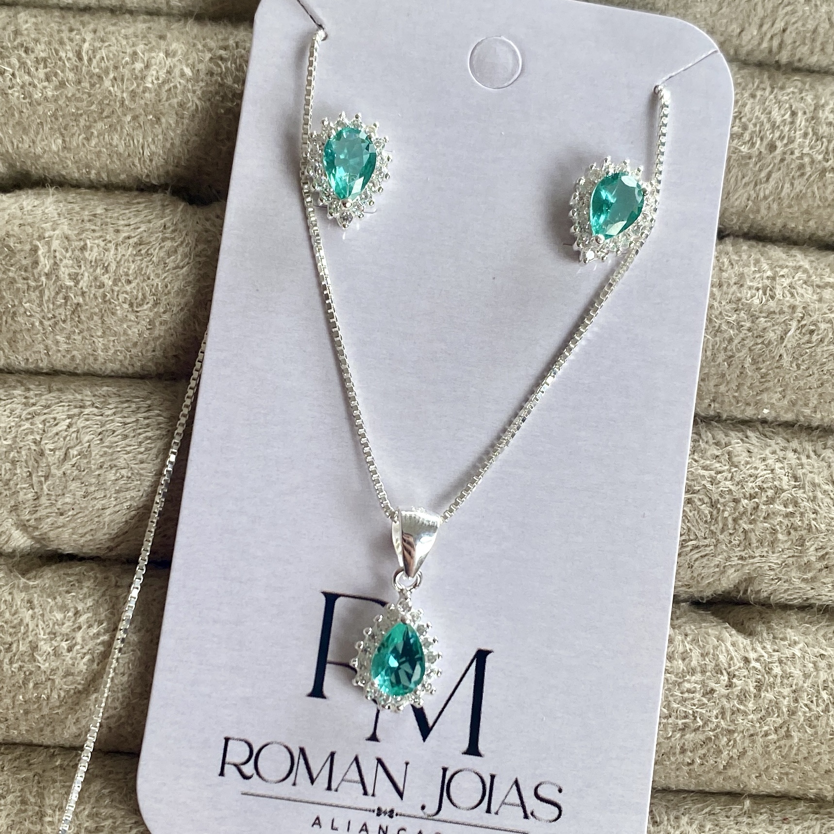 Conjunto Feminino Prata 925 Gota Verde