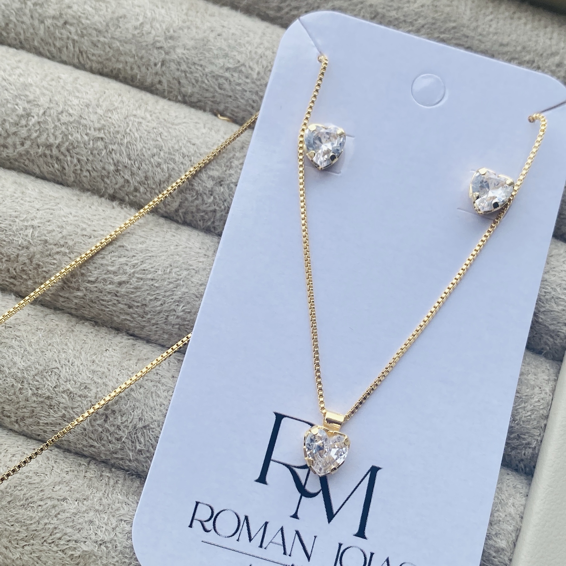 Conjunto Feminino Banhada a Ouro 18k Ponto de Luz Coração