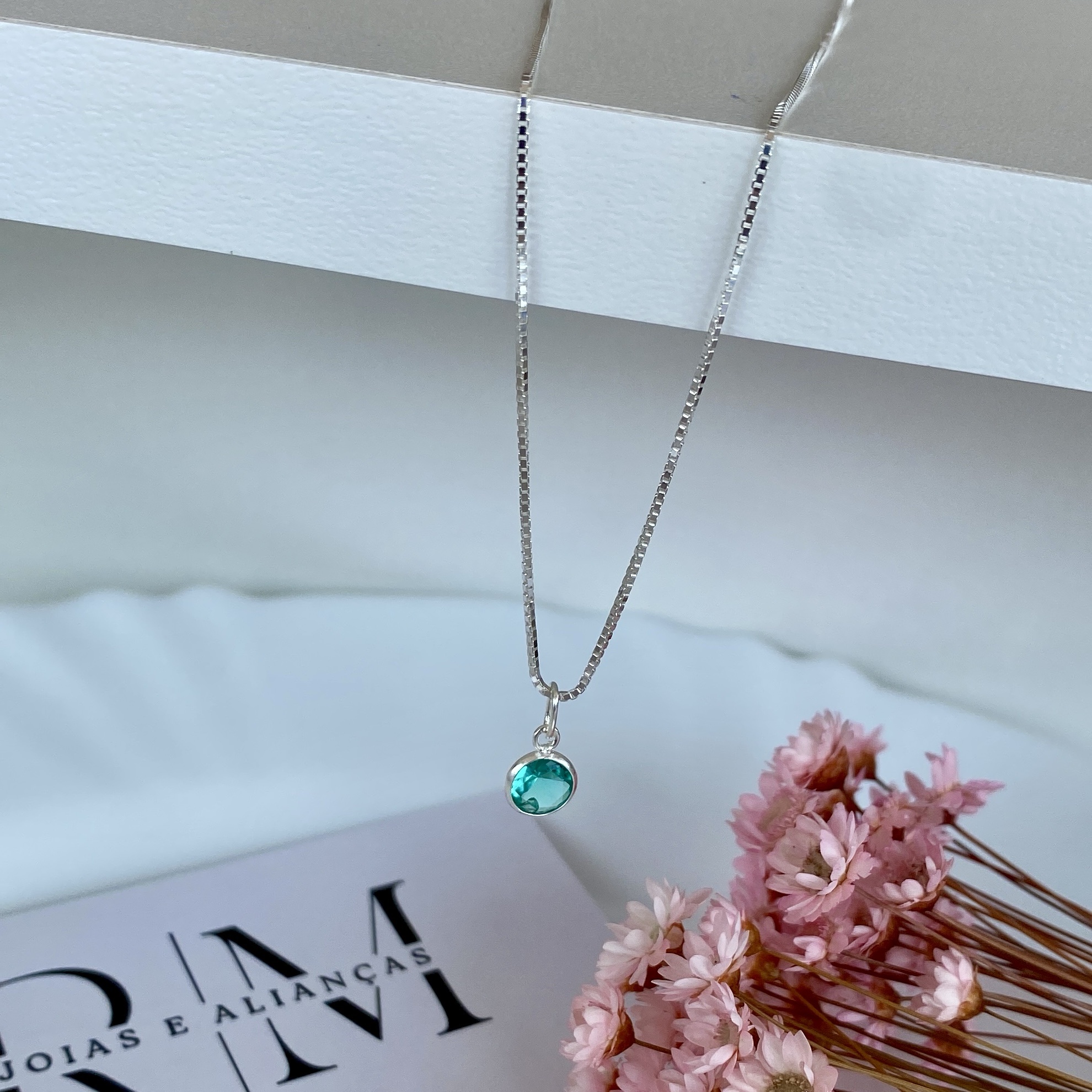 Corrente Feminina Veneziana Com Ponto De Luz Bolinha Verde Claro