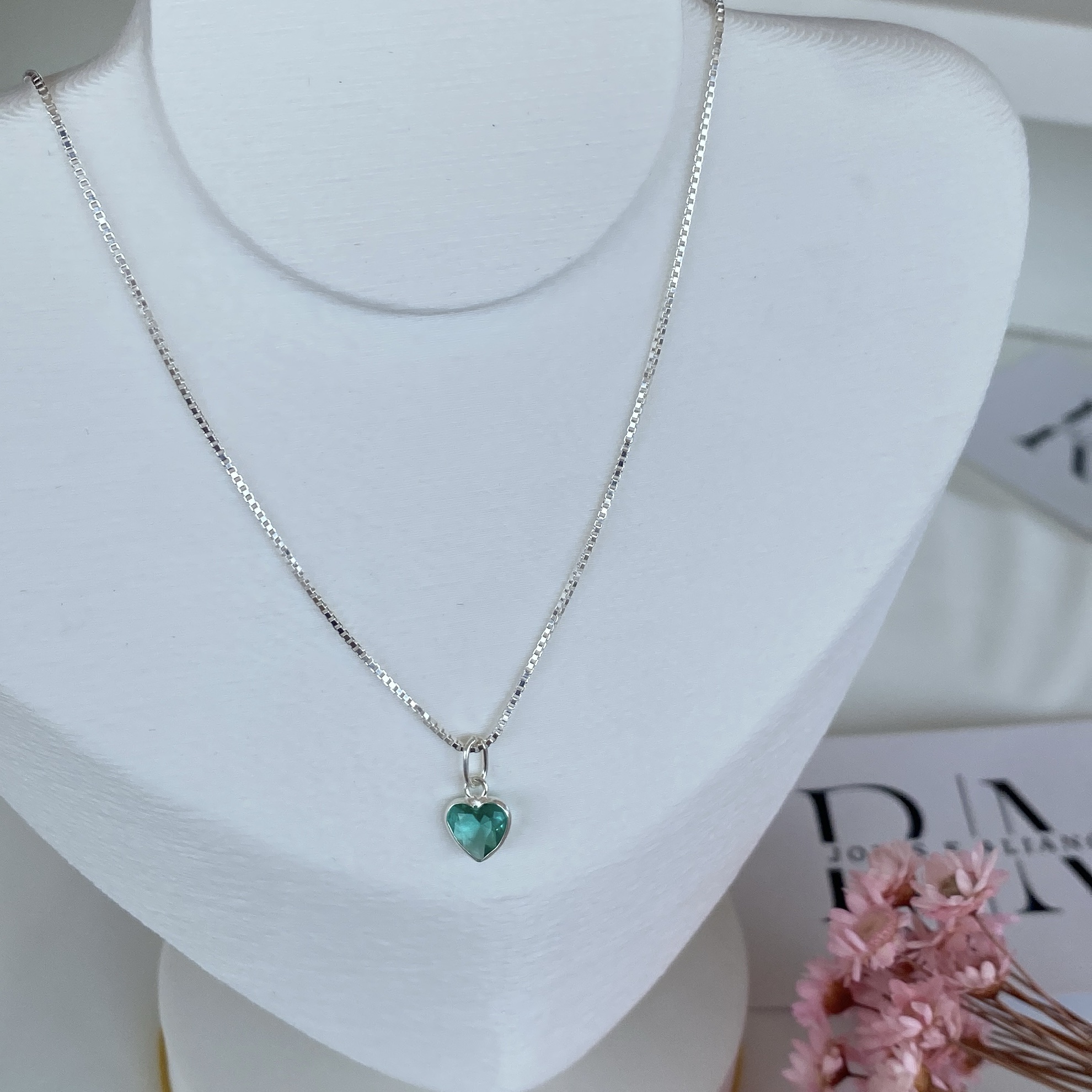Corrente Feminina Veneziana Com Ponto De Luz Coração Verde Água