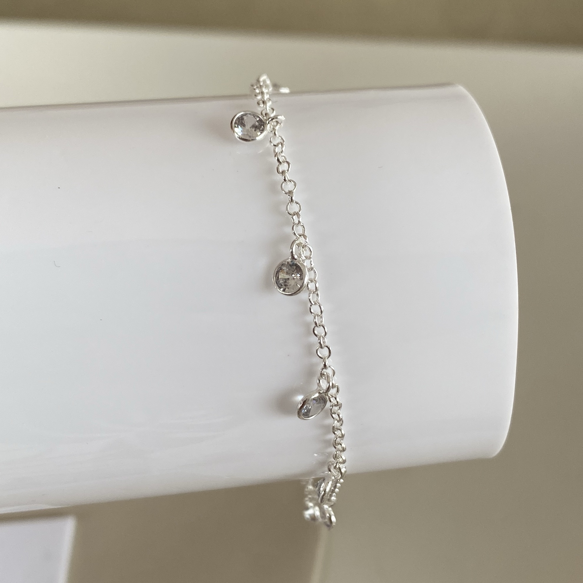 Pulseira De Prata Feminina Ponto De Luz Prata 925