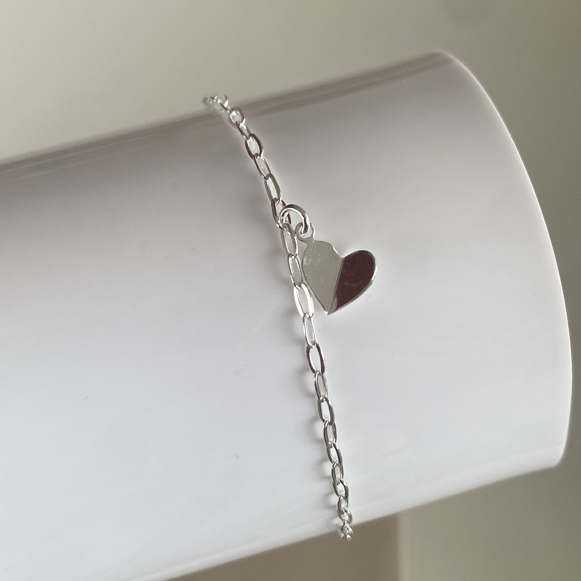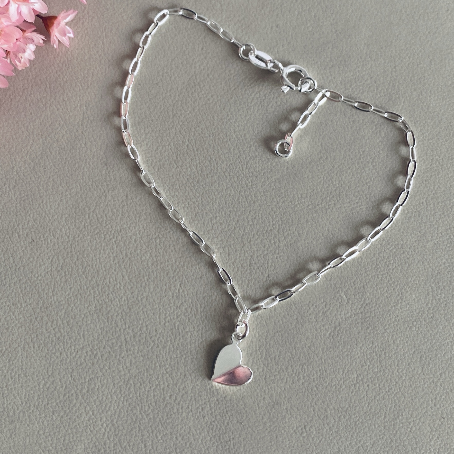 Pulseira De Prata Feminina Coração Chapeado Prata 925