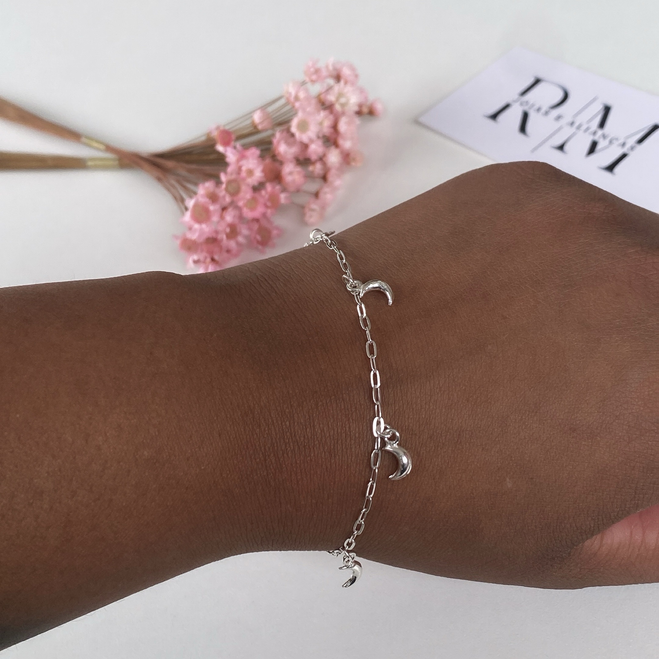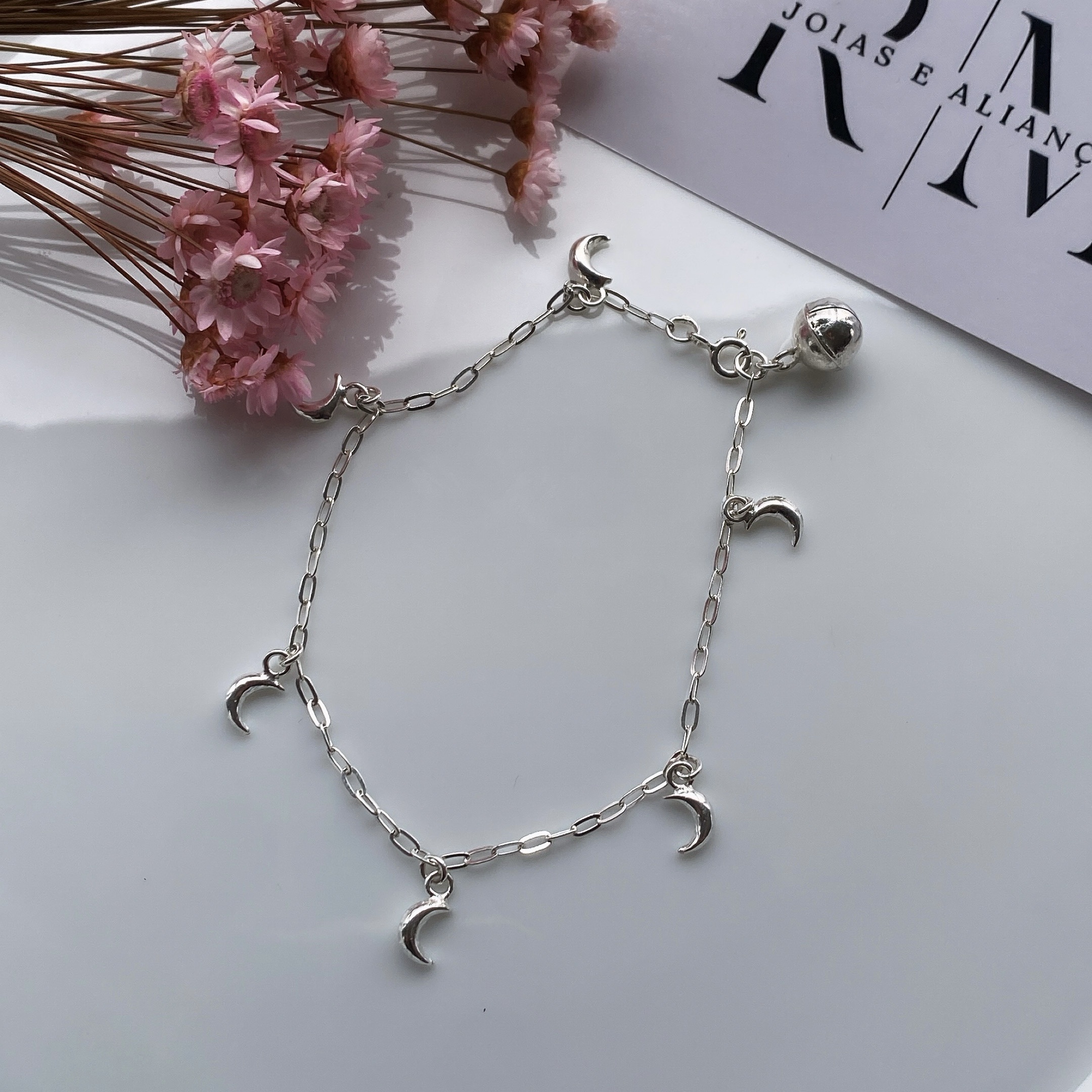 Pulseira De Prata Feminina Lua Prata 925